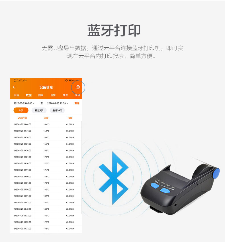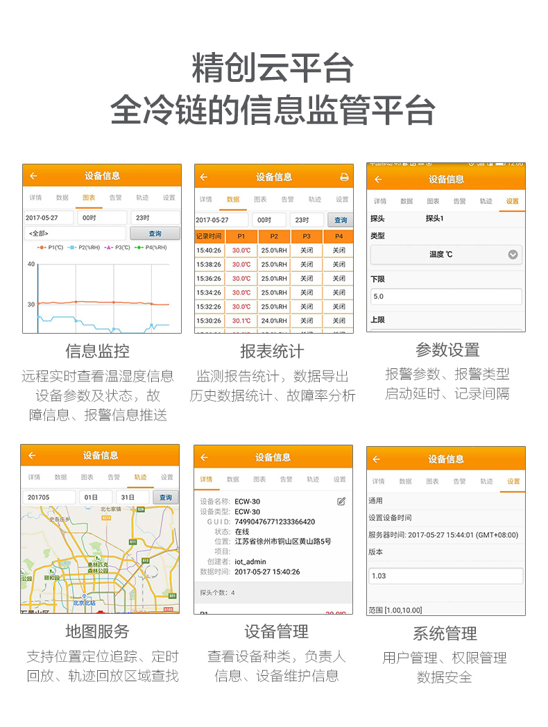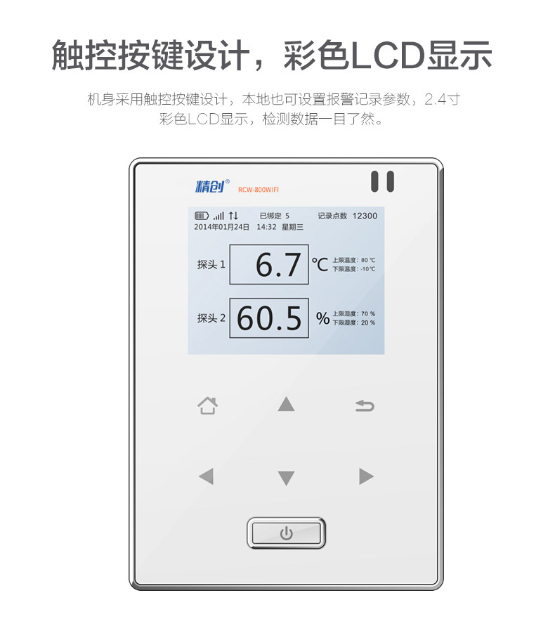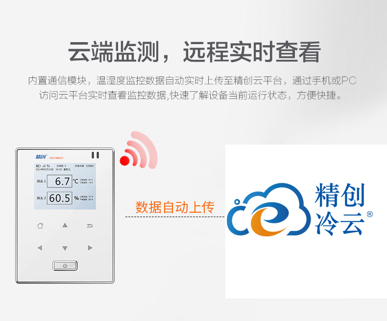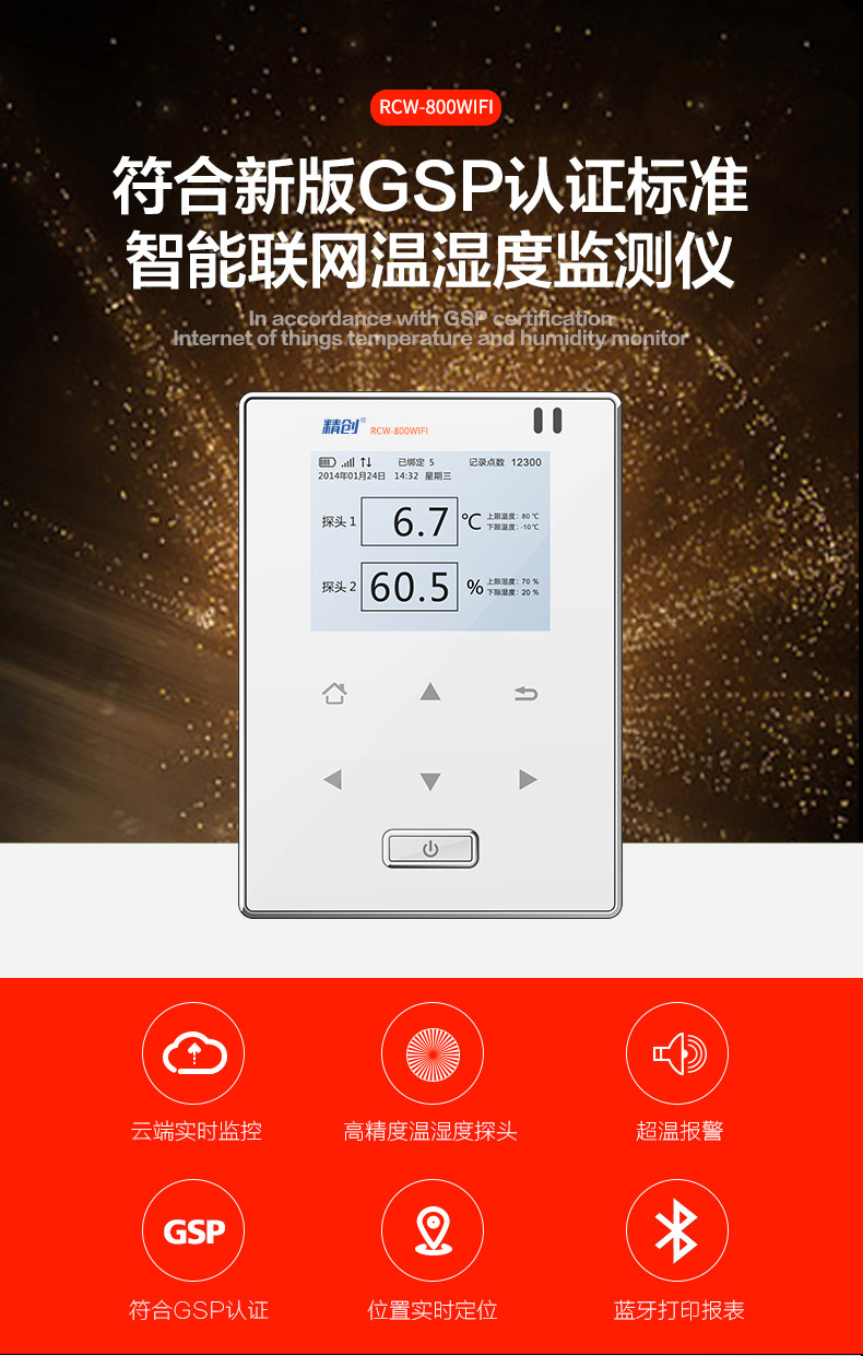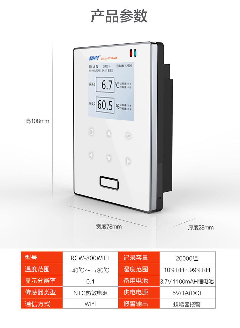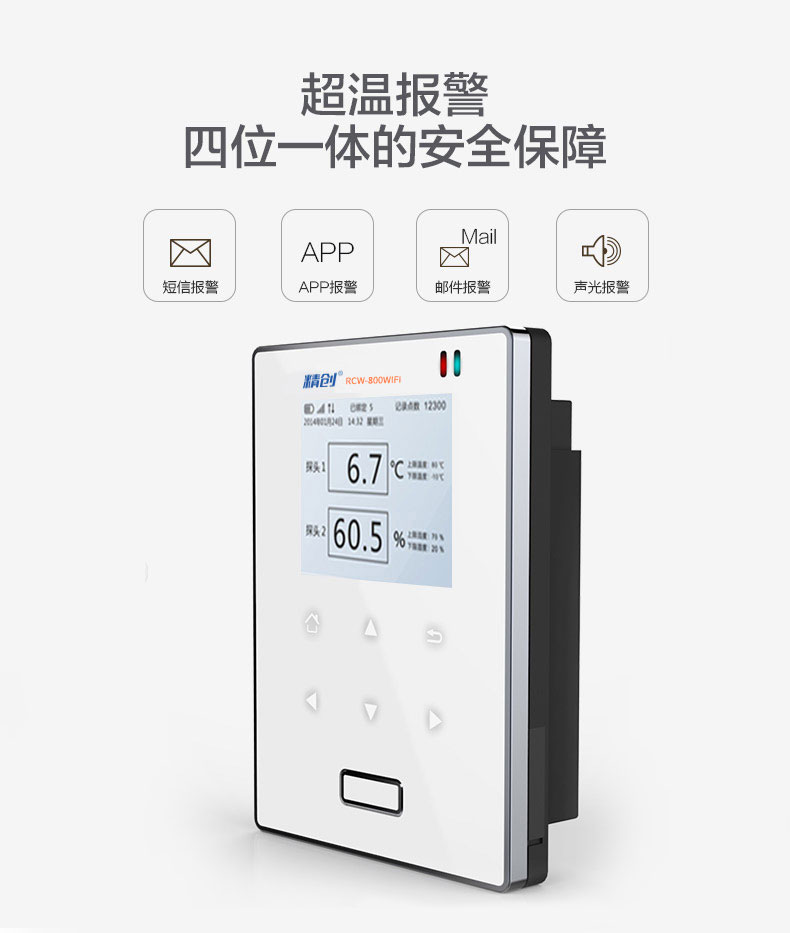 產品概述 精創RCW-800冷鏈溫濕度記錄儀是一款基于物聯網技術的高新技術產品,產品廣泛應用于食品、餐飲、物流以及 HACCP 體系認證的行業。通過 WIFI 數據傳輸方式,結合冷鏈物聯網平臺,客戶通過瀏覽器或者智能手機終端在線實現實時監控數據遠程查看和管理數據。同時還可以通過平臺報警,蜂鳴器報警提示功能。RCW-800Wifi 為 1 溫 1 濕類型,設備內置充電鋰電池,斷電仍可提供實時數據上傳、平臺報警服務。 精創RCW-800冷鏈溫濕度記錄儀產品特點 采用高靈敏度探頭,反應快,靈敏度高; 斷電續航,內置電池可持續工作至少 6 小時; 可設定溫濕度報警閾值,超出設定閾值 LED 燈閃爍、蜂鳴器鳴叫等提示報警; 可設定上傳間隔時間,自由控制數據記錄; 報警儀本機可記錄 20000 組數據,服務器不受存儲組數限制; 連接 Wifi 接入點,采集數據實時上傳云平臺; 靈活導出數據,可通過云平臺導出多種格式數據。 精創RCW-800冷鏈溫濕度記錄儀技術指標 供電電源:5V/1A (DC); 測溫范圍:-40℃ ~ +80℃ 測溫精度:-20℃ ~ +40℃:±0.5℃; 其他±1℃; 測濕范圍:10%RH ~ 95%RH; 測濕精度:±5%RH; 記錄間隔:1 分鐘 ~ 24 小時; 離線記錄容量:20000 組; 通信方式:Wifi; 備用電池:3.7V 1100mAh 鋰電池 聲明:此篇為蘇州閩泰瑞澤電子科技有限公司原創文章,轉載請標明出處鏈接:http://www.aolekang.net/h-nd-389.html