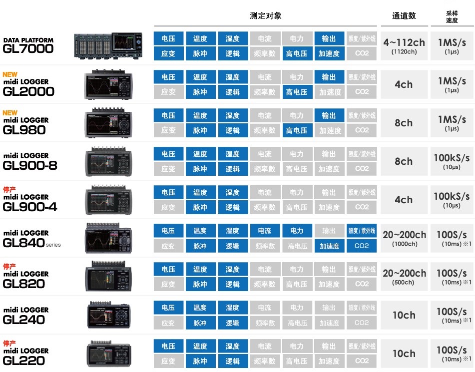 電壓數據采集記錄儀GL840WV發表時間:2022-07-28 18:43作者:購儀器儀表網 產品介紹: 日本圖技GRAPHTEC GL840系列絕緣多通道便攜式數據記錄儀midi LOGGER GL840 serles有2個產品型號,適合多通道溫度測量的[標準型 GL840-M外、增加了適合充電電池的電壓測量和溫度測量的[耐壓-準確型GL840-WV。圖技GL840系列絕緣多通道便攜式數據記錄儀(溫度記錄儀)是GL820的升級版本!GL840系列絕緣多通道便攜式數據記錄儀(溫度記錄儀)配備了[模擬信號輸入(全通道隔離多功能)][邏輯/脈沖輸入][數字式傳感器輸入口,支持7種GS傳感器]的3種輸入口、可測量各種各樣的現象。圖技記錄儀GL840WV連接上路由器后、本地、互聯網都可以簡單實現無線測量。也可進行遠程監控。使用無線LAN模塊、5臺PetitLOGGER GL100、可以作為子機連接。圖技記錄儀GL840WV可測量電壓,電流,溫度,濕度,紫外線及白光照度,振動/加速度,二氧化碳等。