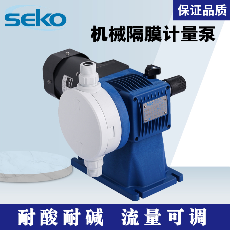 SEKO賽高機械隔膜計量泵MSAH070R31XT080是一種機械隔膜計量泵,具有彈簧復位機械裝置和PPS外殼。內置雙凸輪結構,運行穩(wěn)定無噪音,流量精準;馬達絕緣等級F;外殼材料耐酸堿腐蝕,具有優(yōu)良的高溫抗蠕變性能;整蹦的防護等級達到IP55。電機有單相電機,三相電機。流量范圍:10-120L/H;壓力:5BAR;泵頭材質分為:PVC、SS316