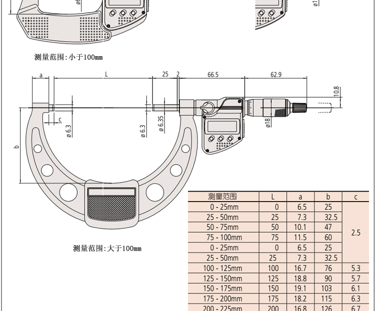 外徑千分尺規格齊全,可以測量范圍達到300mm