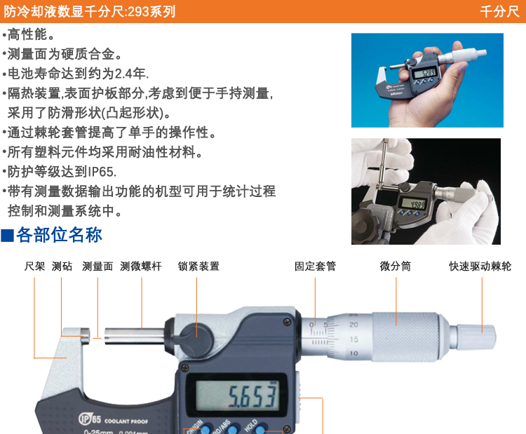 日本Mitutoyo三豐防冷卻液千分尺293-241-30產品概述