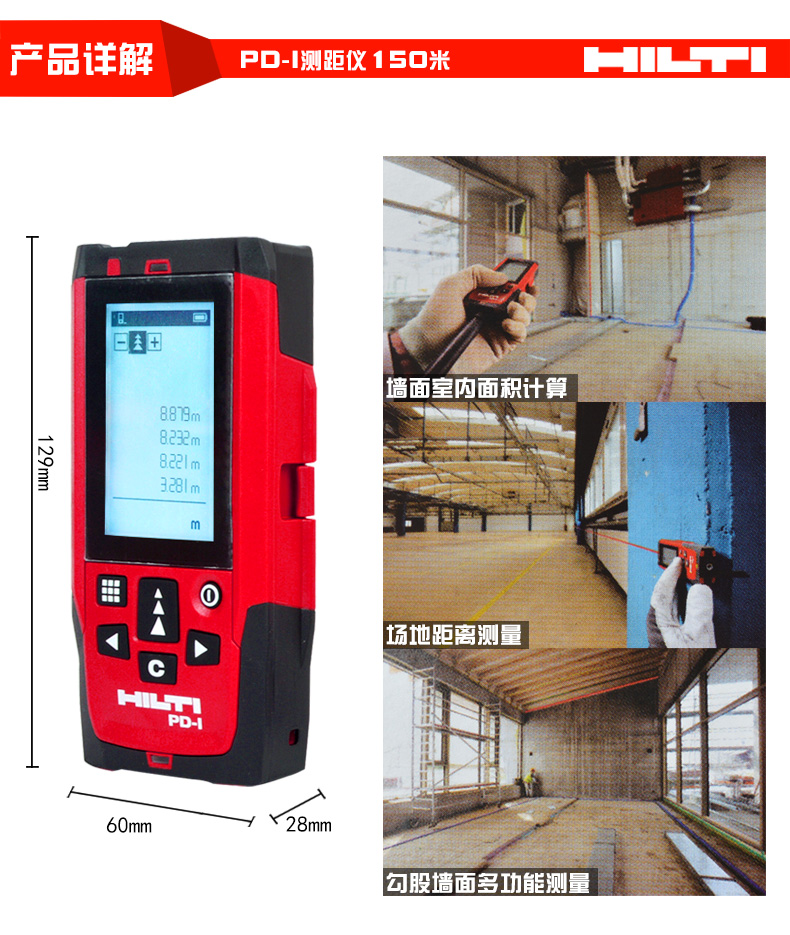 喜利得HILTI PD-I激光測距儀特有的脈沖激光技術,PD-I激光測距儀為測量系列產品的**性和可靠性定義了更高標準。豐富的制造經驗,激光測距儀的先行者,全新5代產品震撼上市。單通道測距技術,1毫米起測,解決普通測距儀內無法測量的弊端。激光發射器和接收器合二為一,激光組件體積只有上一代的1/7,更小巧,更堅固,性能更穩定。
