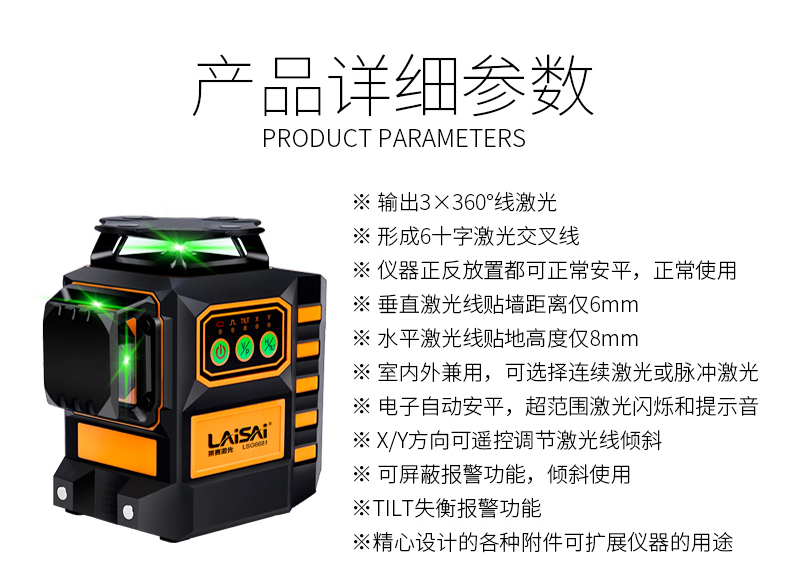 X/Y方向可遙控調(diào)節(jié)激光線傾斜