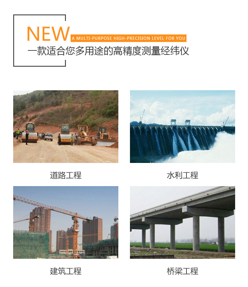 DT400系列電子經緯儀可廣泛應用于國家和城市的三、四等三角控制測量,用于鐵路、公路、橋梁、水利、礦山等方面的工程測量,也可用于建筑、大型設備的安裝,應用于地籍測量、地形測量和多種工程測量。