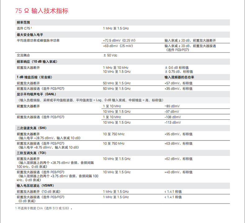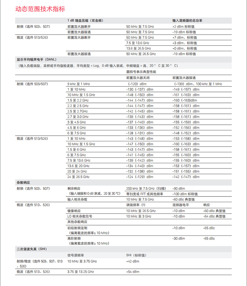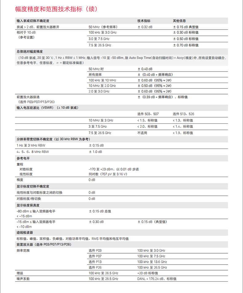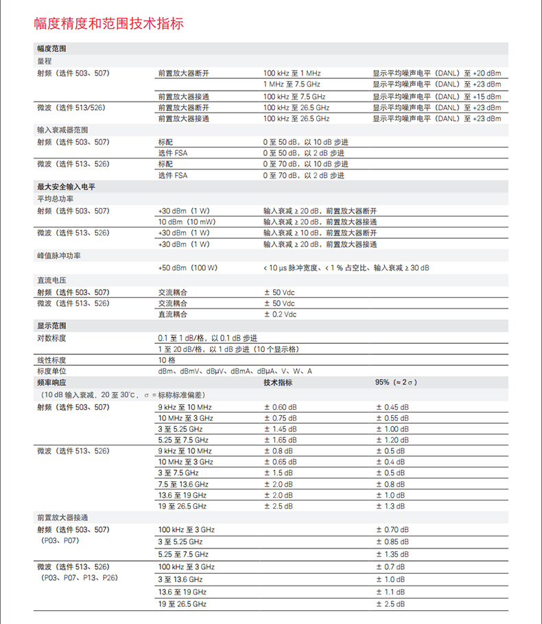 頻率選件3, 7.5, 13.6, 26.5 GHz