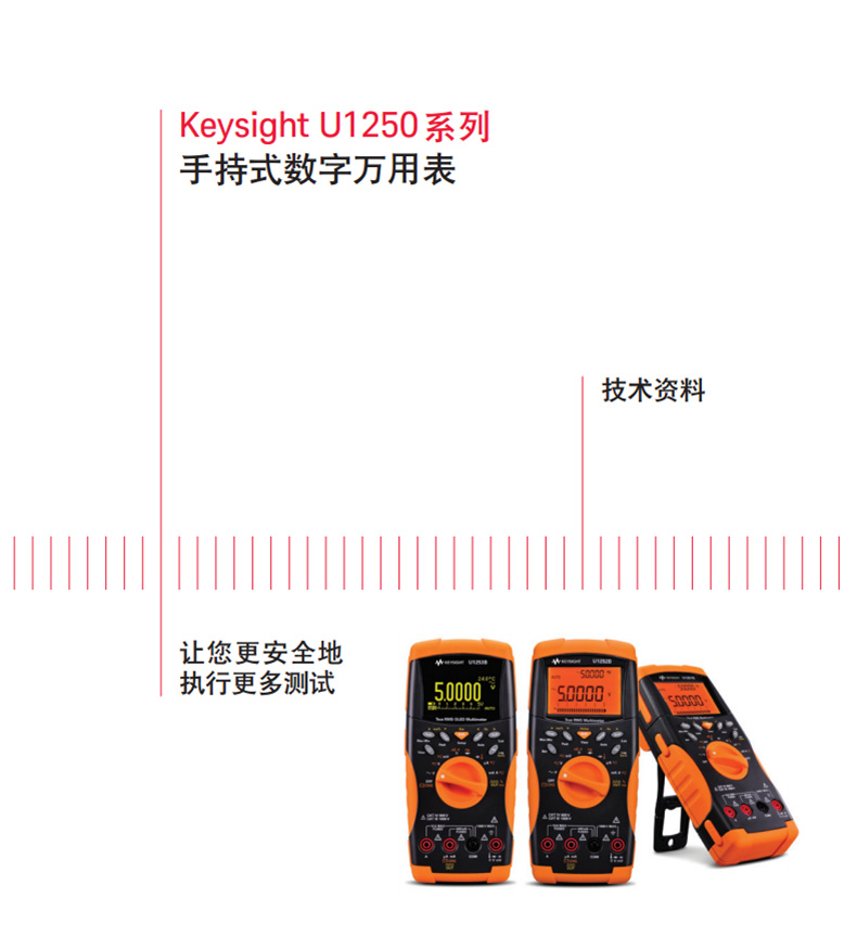 Keysight是德數(shù)字萬用表U1251B適用于由于測試要求高精密性、精確度和重復(fù)性而長時間執(zhí)行測試的用戶,供其高效自信地完成任務(wù)。U1251B 數(shù)字萬用表還設(shè)計用于增加生產(chǎn),配備了更持久的電池壽命。電池壽命可持續(xù)長達(dá) 70 小時,使您可以使用更長時間,而無需暫停以更換電池。采用人機工程學(xué)設(shè)計的手持式數(shù)字萬用表具有大型 LCD 顯示屏和背光,您可使用防滑動旋轉(zhuǎn)刻度盤,單手選擇測量功能,讓您在較低光工作環(huán)境中輕松提高生產(chǎn)。此數(shù)字萬用表設(shè)計堅固,符合可耐受工業(yè)標(biāo)準(zhǔn)、U1251B 是用于滿足日常任務(wù)要求的理想之選。U1251B 系列數(shù)字萬用表提高了安全性能,帶有可視(閃光背光顯示屏)和音頻(蜂鳴器)警報,并讓您可以進(jìn)行連續(xù)測試,同時配備內(nèi)置開關(guān)/繼電器計數(shù)器,可迅速檢測異常。該電池供電的手持式數(shù)字萬用表具有 50,000 個真有效值讀數(shù)、4 1/2 位顯示屏和模擬條形圖結(jié)果,簡單明了。