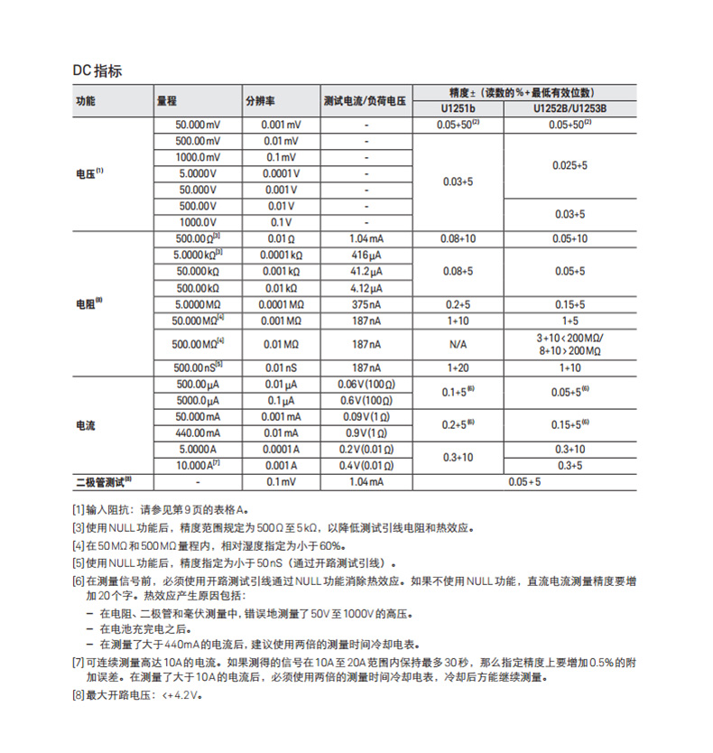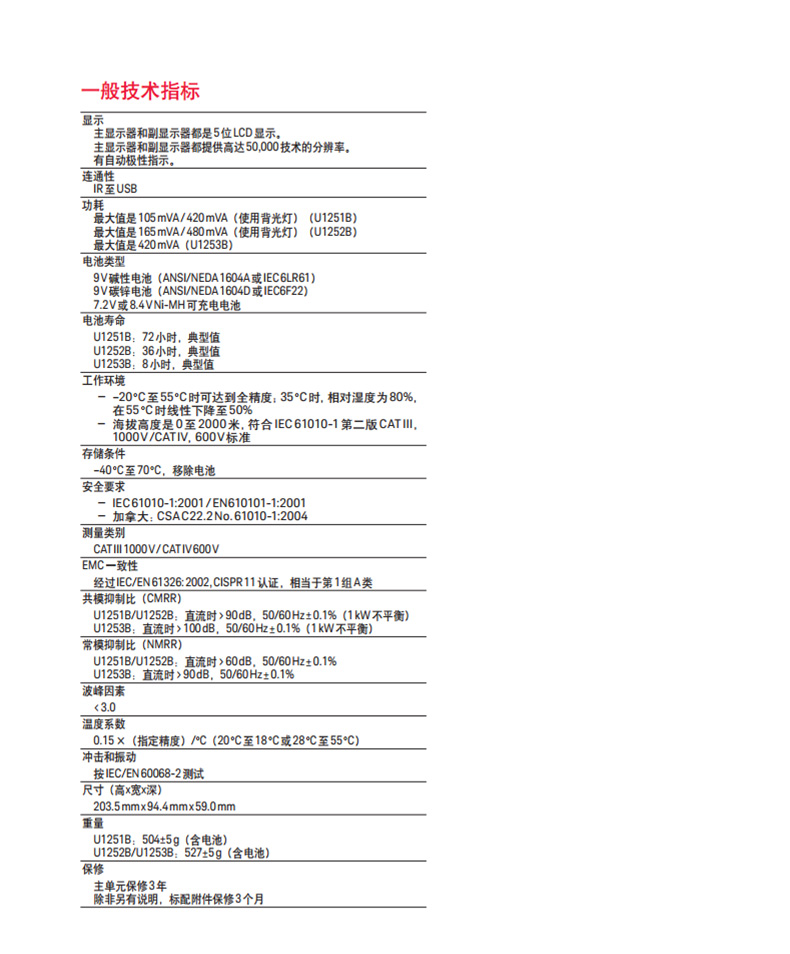 是德數(shù)字萬用表U1251B技術(shù)參數(shù)