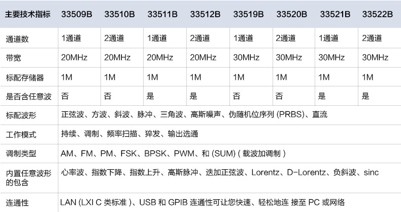波形創建和編輯是德函數信號發生器33509B技術參數