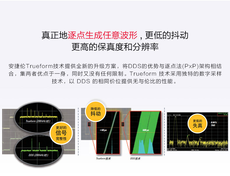 16 位分辨率和 1 mVpp 至 10 Vpp 幅度可提供更高的幅度精度