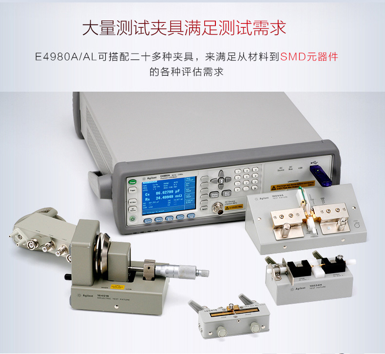 E4980AL 支持種類繁多的附件,適用于多種應用。這些附件可使元件測量變得簡單而可靠。