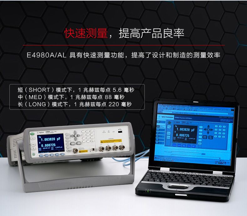 無論是低阻抗范圍還是高阻抗范圍,E4980AL 均能提供極快的測量速度和出色的測量性能,是元件和材料的常規研發測試及制造過程測試的理想工具。LAN、USB和GPIB PC連通性能夠提高設計和測試的生產率。