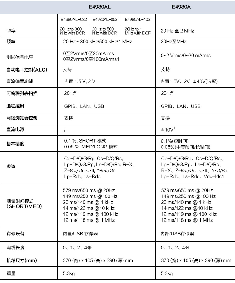 是德LCR表測試儀E4980AL主要特性與技術指標