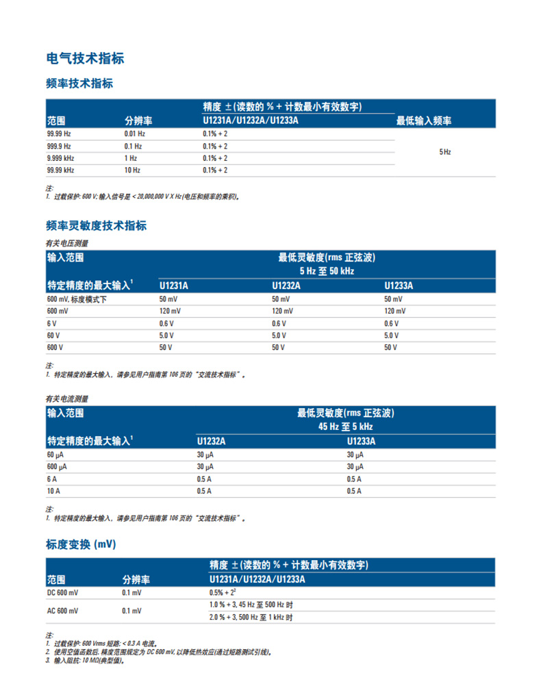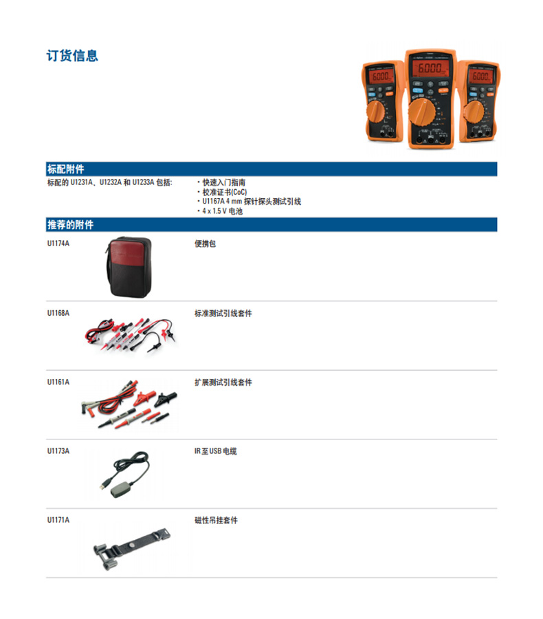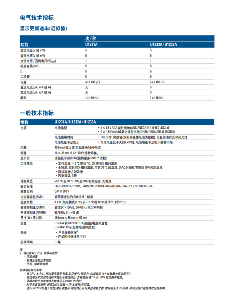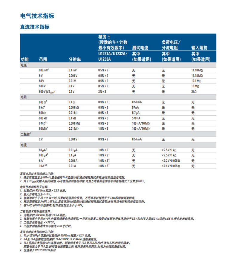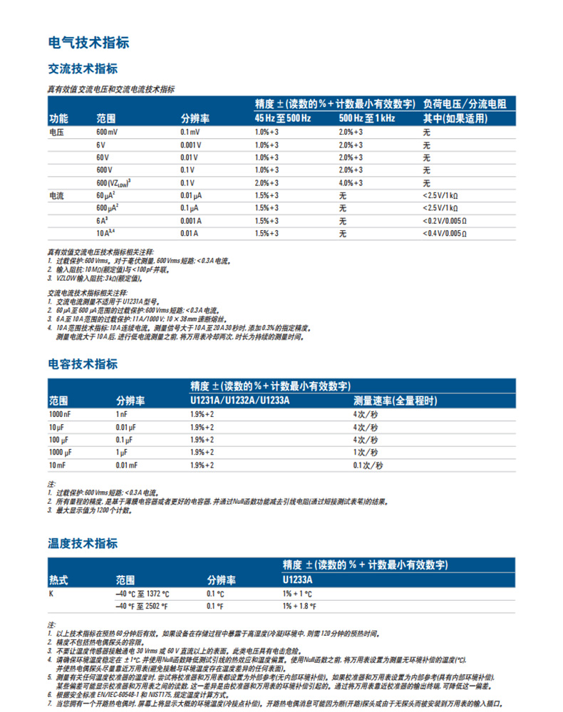 是德U1231A萬用表技術參數