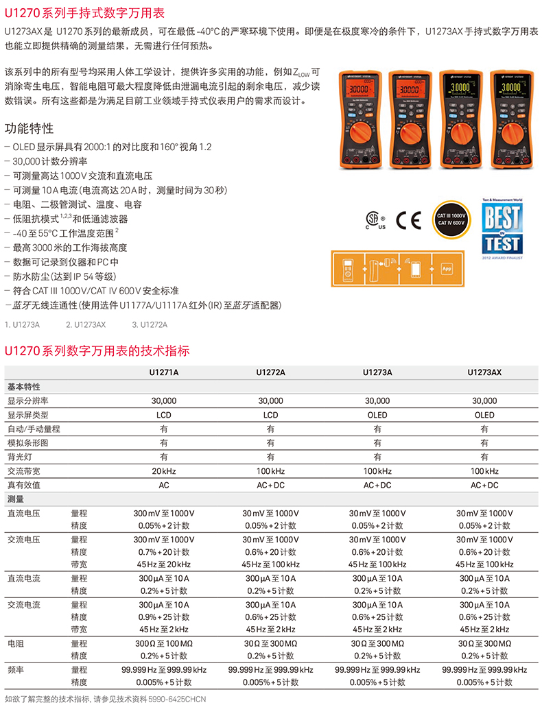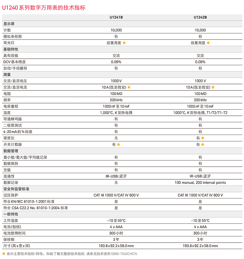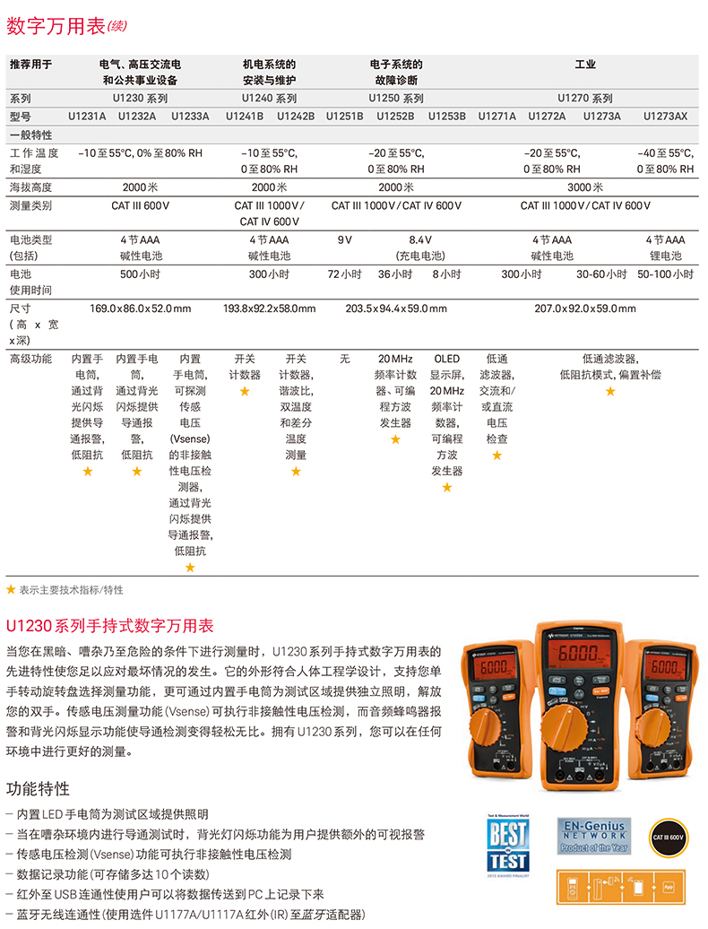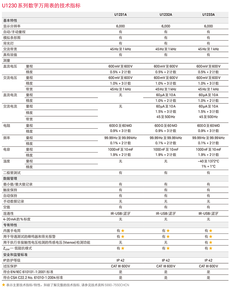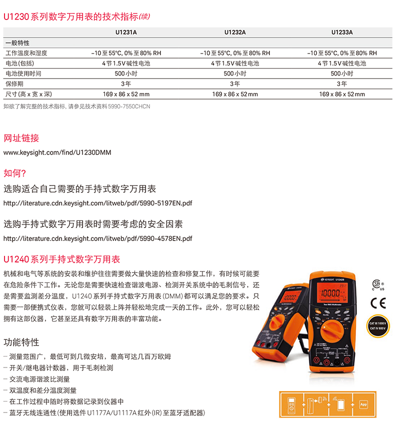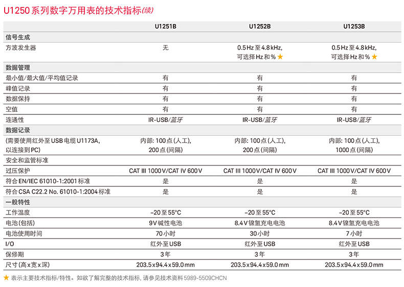 是德U1231A萬用表技術參數