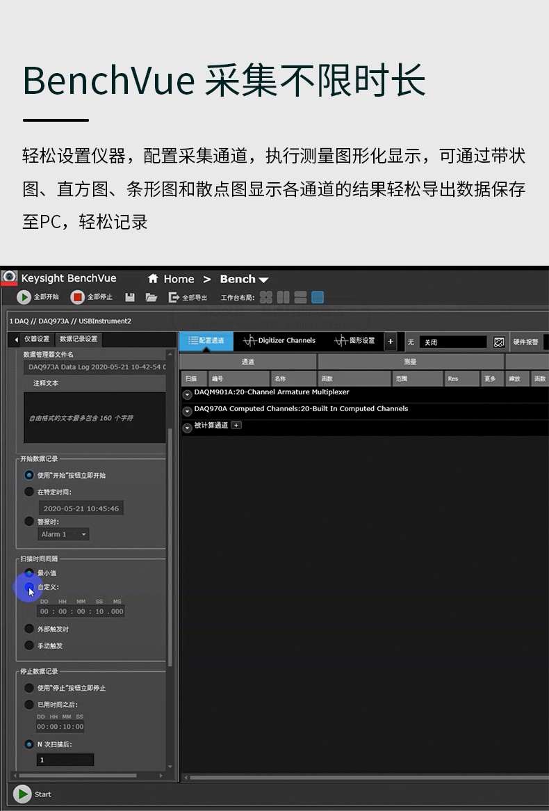 有了 BenchVue DAQ 軟件,無需寫入或配置軟件,就可以進行實時分析和數據顯示。