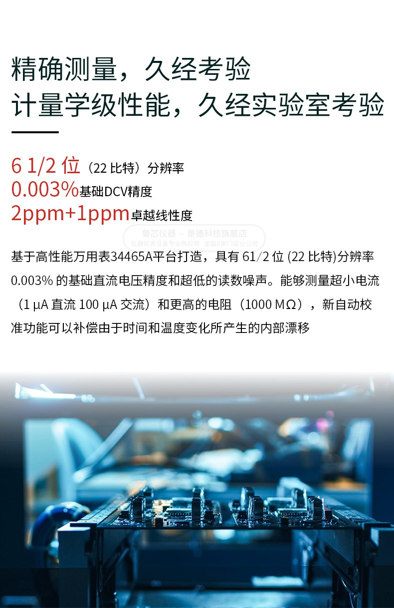 ? 自動校準 — 內置內部模塊校準,可減少熱電壓偏移誤差? 廣泛的電流測量范圍,從 1 μA 直流和 100 μA 交流到高達 1000 MΩ? 用戶界面包括帶軟鍵的 LCD 屏幕 — 使測量顯示和配置變得簡單? SCPI 語言編程,兼容 34970A/34972A? 局域網和 USB 連接? 內置圖形 Web 界面,輕松訪問支持 Web 瀏覽器的任何操作系統,無需安裝軟件? 26 位事件計數器? 兩個 16 位模擬輸出? 兩個 8 位數字輸入/輸出端口