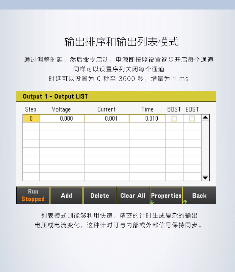 備用電池可防止設(shè)備的數(shù)據(jù)丟失,以防您在檢索前就必須轉(zhuǎn)移數(shù)據(jù)。除了的數(shù)據(jù)記錄儀,E36300 系列還可以存儲(chǔ)輸出列表。這些讓您可以為那些應(yīng)用程序和需要單獨(dú)產(chǎn)生電源軌道的測試設(shè)置電源序列。您可以對編程電壓、電流和的每個(gè)設(shè)置持續(xù)時(shí)間進(jìn)行編程。該列表還可基于內(nèi)部或外部事件被觸發(fā),您可重復(fù)列表以獲得更長的序列。