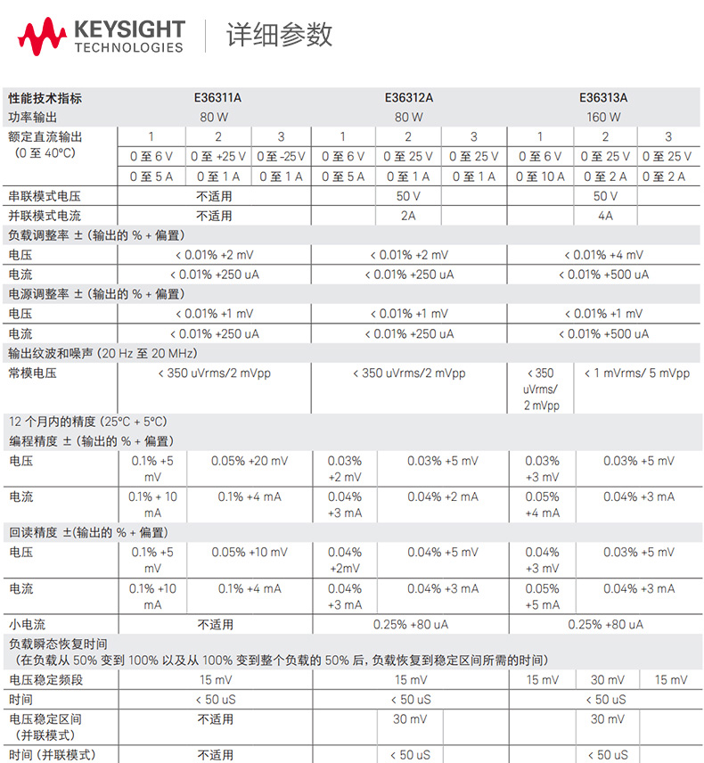 是德E36311A三路輸出可編程直流電源技術(shù)參數(shù)