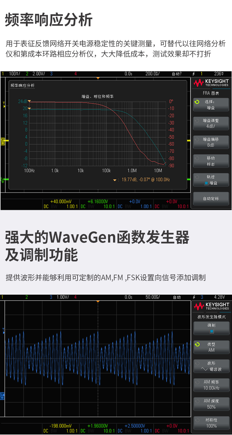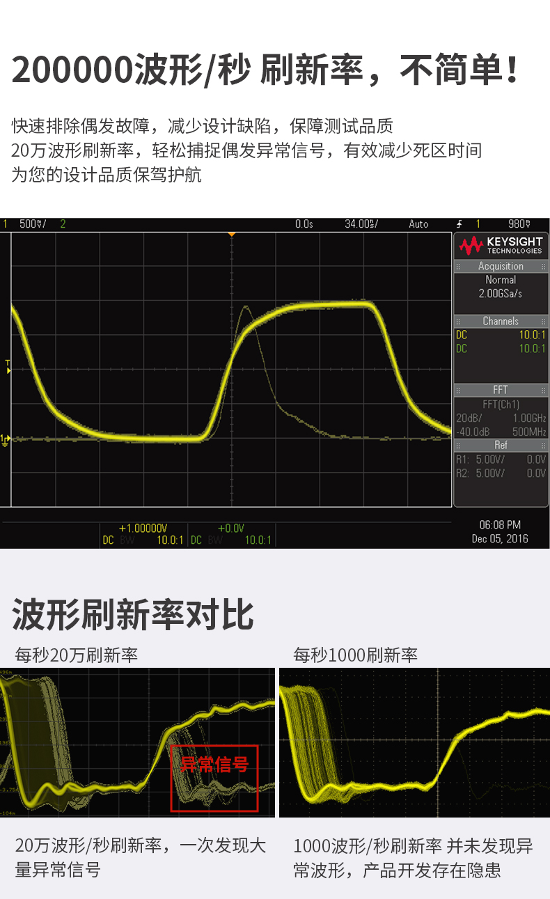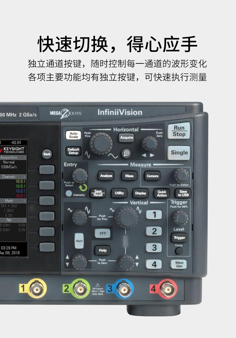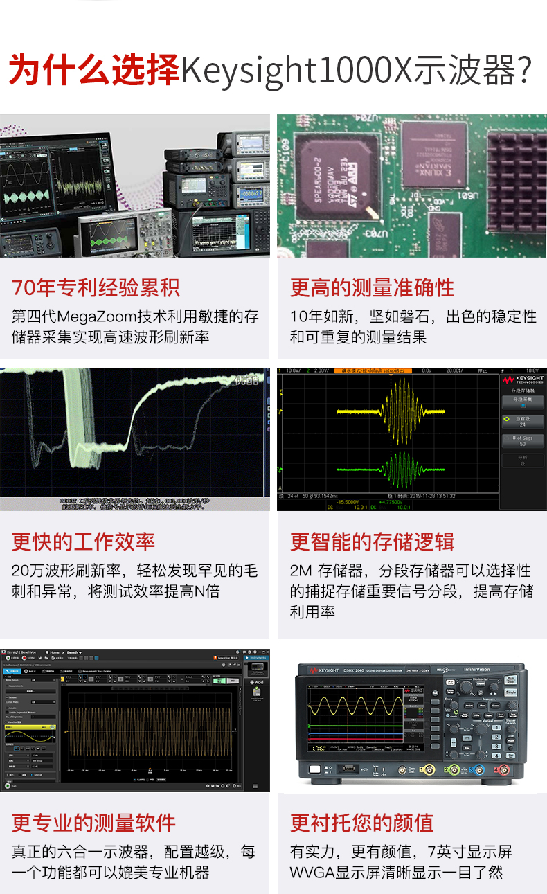 ?以 50,000 wfms/s 的更新速率提供更多的信號細節(jié)?大采樣率為 2GA/S?大內(nèi)存深度為 1 Mpts? 7 英寸 TFT LCD WVGA 顯示屏?計算的上升時間為 5ns ( 10% 至 90% )?內(nèi)置 USB 主機和 USB 設(shè)備端口使 PC 連接變得輕松?訪問 24 個內(nèi)置自動測量?分段內(nèi)存和屏蔽 / 限制測試?它有多語言菜單?它具有 X-Y 、卷軸操作模式
