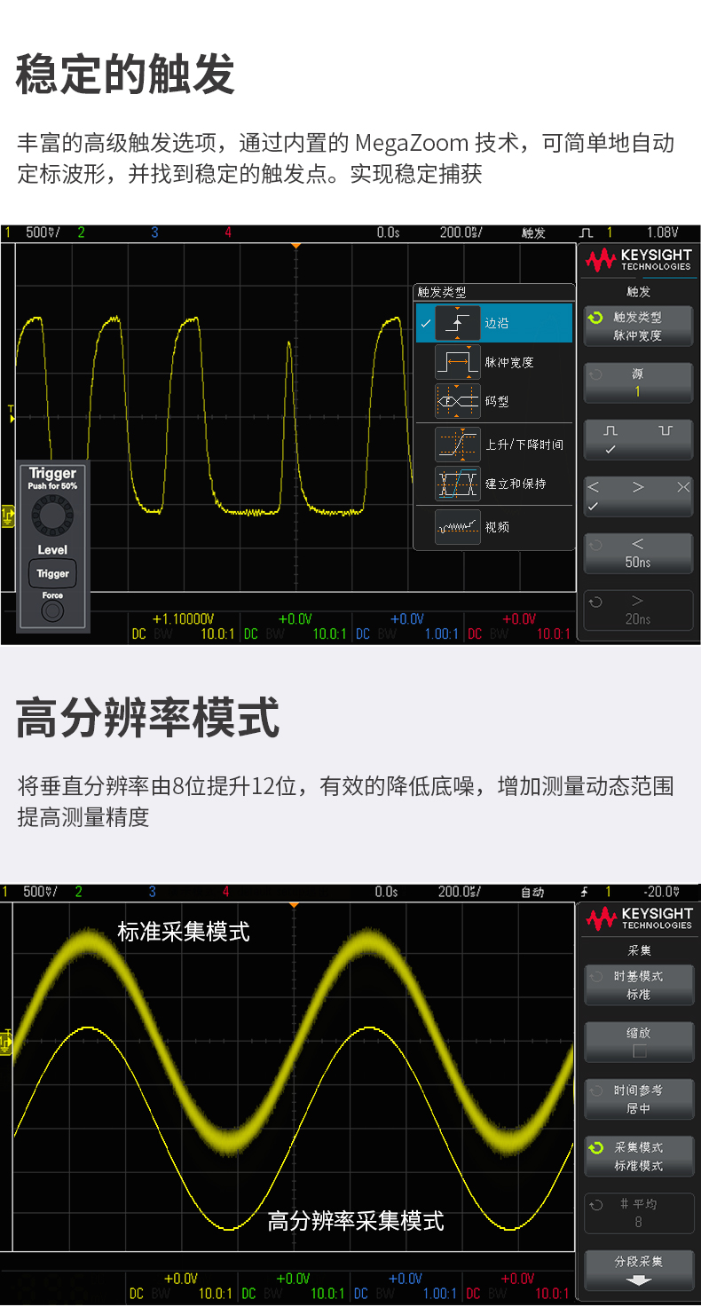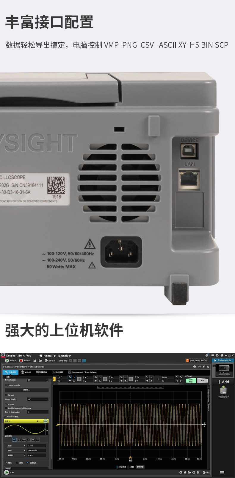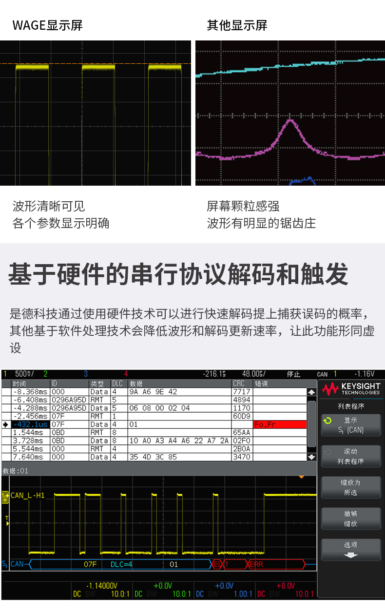 ?以 50,000 wfms/s 的更新速率提供更多的信號細節(jié)?大采樣率為 2GA/S?大內(nèi)存深度為 1 Mpts? 7 英寸 TFT LCD WVGA 顯示屏?計算的上升時間為 5ns ( 10% 至 90% )?內(nèi)置 USB 主機和 USB 設(shè)備端口使 PC 連接變得輕松?訪問 24 個內(nèi)置自動測量?分段內(nèi)存和屏蔽 / 限制測試?它有多語言菜單?它具有 X-Y 、卷軸操作模式