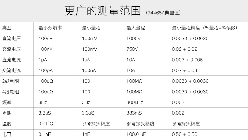 | 直流電壓精確度 | ±0.003% +0.0006,±0.0065% +0.001,±0.0085% +0.001,±0.011% +0.001 |