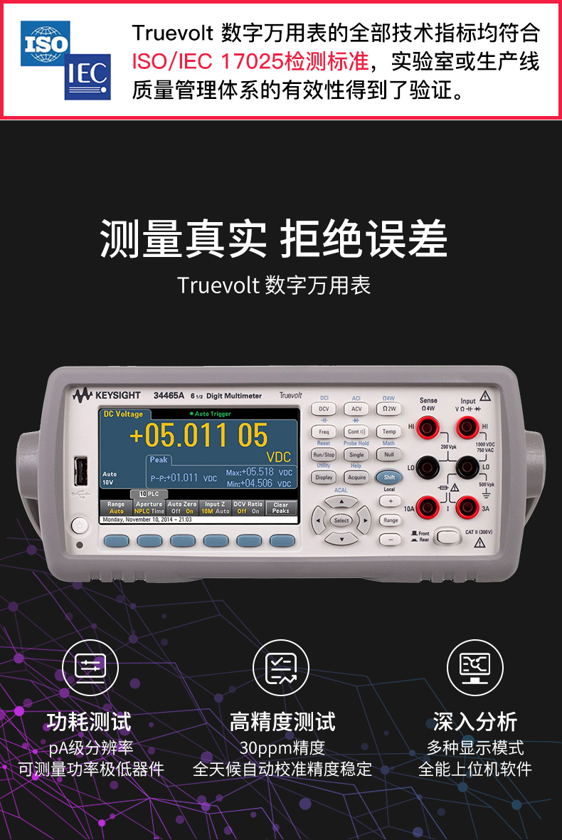 Truevolt 數字萬用表與 34401A 的設計團隊相同。數十年來,Keysight 一直致力于數字萬用表測量。34460A 具有您了解和信任的一切內容。