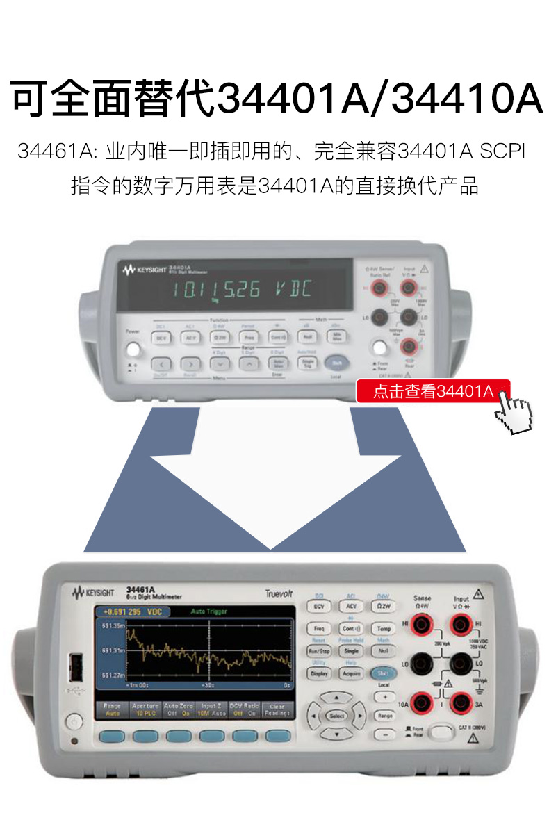 34461A 是常用 Keysight 34401A 數字萬用表的下一代替代品,具有與前代產品完全相同的功能,同時提高了可用性和測量技術。