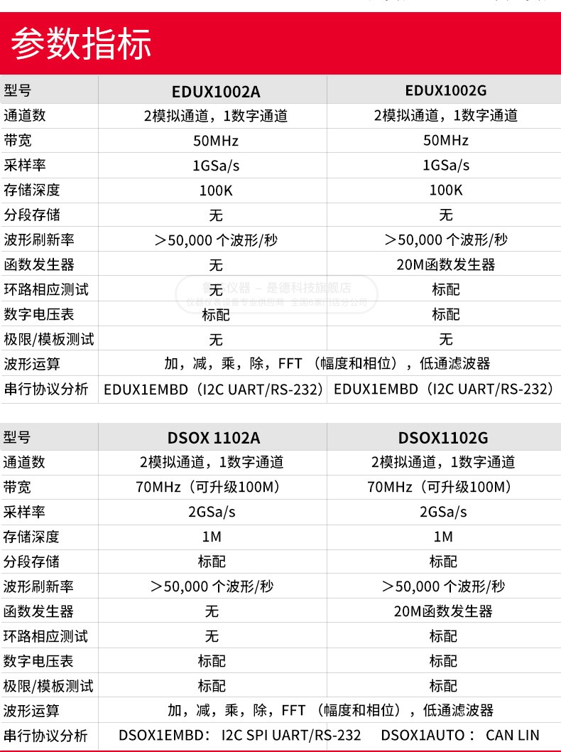 EDUX1002G(帶寬50MHz/采樣率1G/存儲深度100k)帶函數(shù)發(fā)生器
