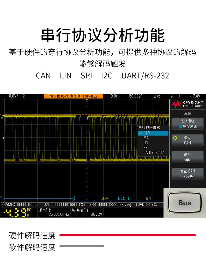 串行協(xié)議分析儀(帶附加軟件)通信協(xié)議 I2C、UART/RS-232 和汽車協(xié)議 CAN、LIN