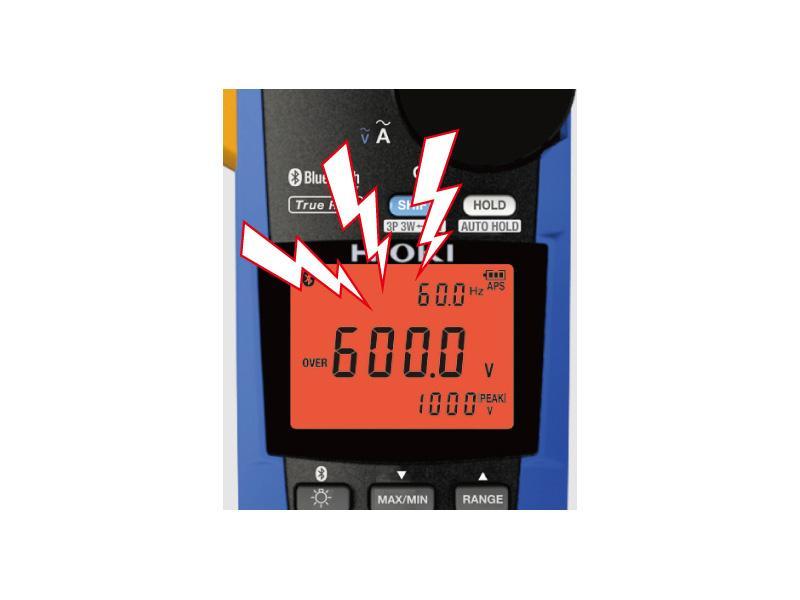 檢測電流或電壓過輸入時,以紅色背光燈和蜂鳴音發出警報,從而防止事故發生。
