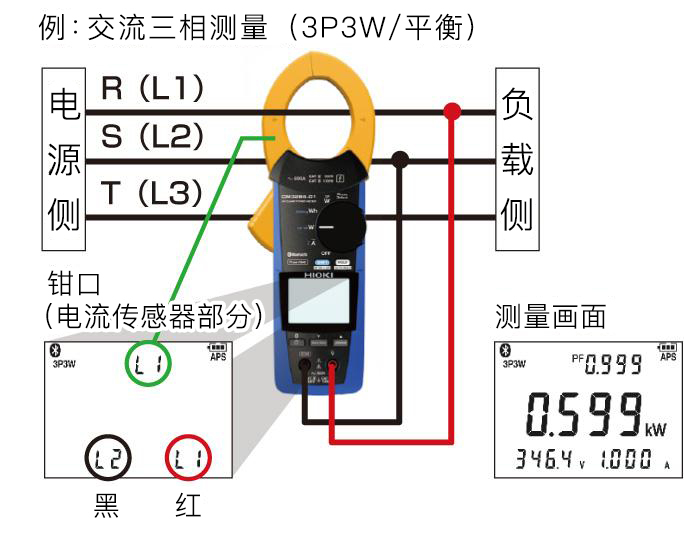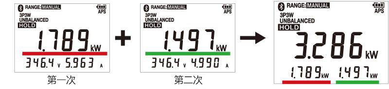 進行2次單相功率測量的話,會自動相加,能夠測量三相3線的不平衡功率。(進行3次測量時可以測量三相4線)