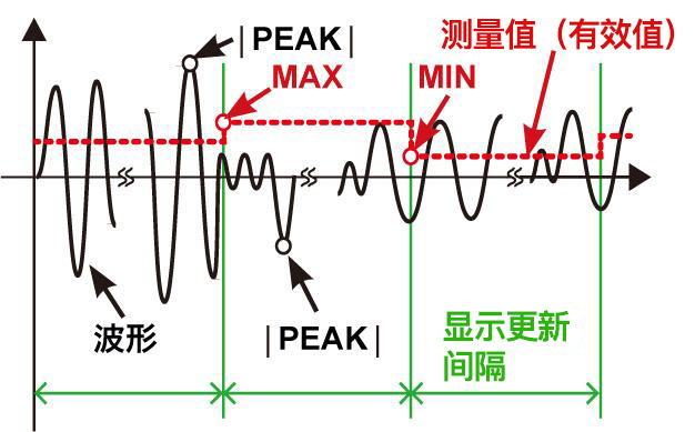 因為能夠顯示*大值(MAX)、最小值(MIN)、平均值(AVG),所以有助于掌握變化情況。 也能測量波峰值(PEAK)的*大值,因此能夠確認波峰值電平的變化。