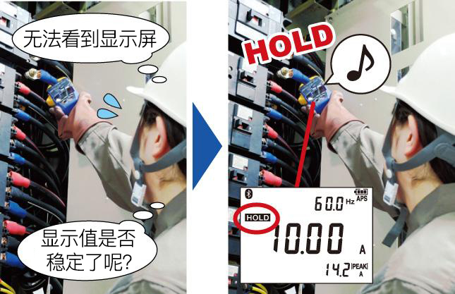 測量值穩定后出現蜂鳴音,并自動保持顯示值。
