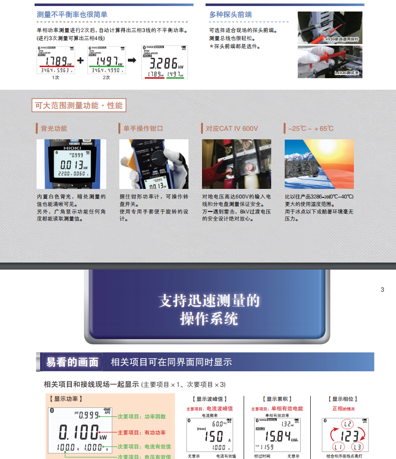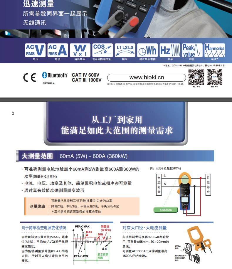 可以準確測量最小60mA的低電流的話從5W到**600A下360kW的功率(單相功率時)