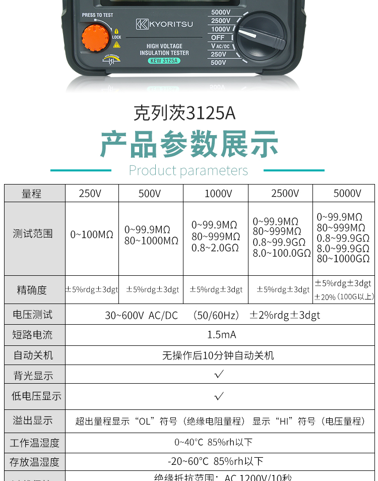 共立3125絕緣電阻測(cè)試儀技術(shù)參數(shù)
