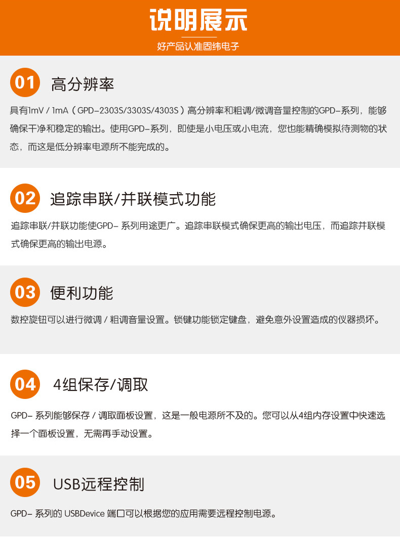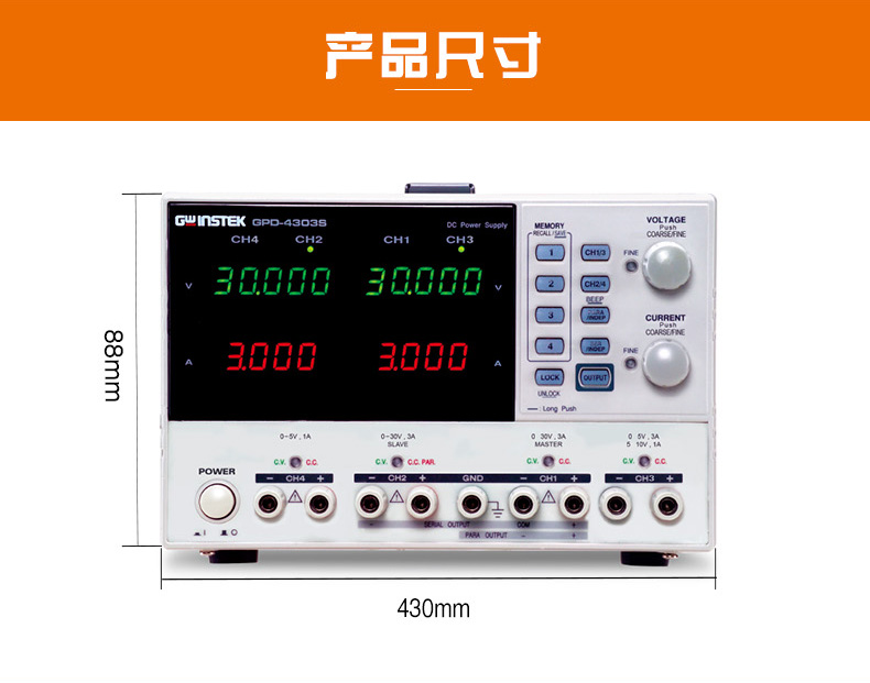 ★ *小分辨率:GPD-2303S/3303S/4303S (1mV/1mA),GPD-3303D (100mV/10mA)