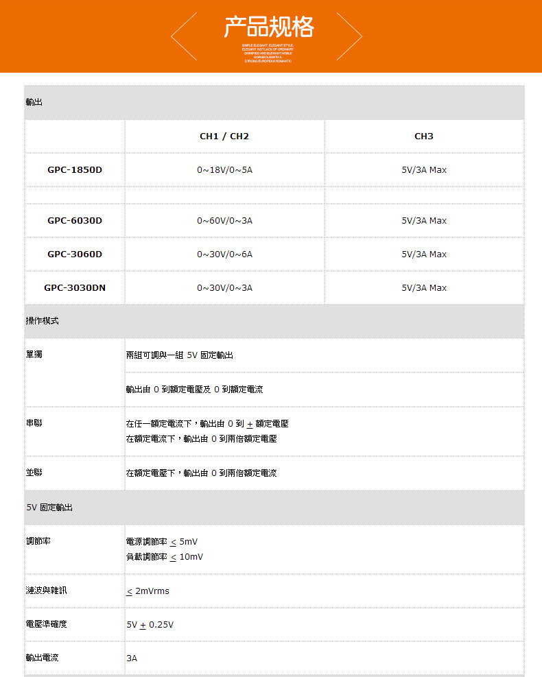 GPC系列直流電源規(guī)格: