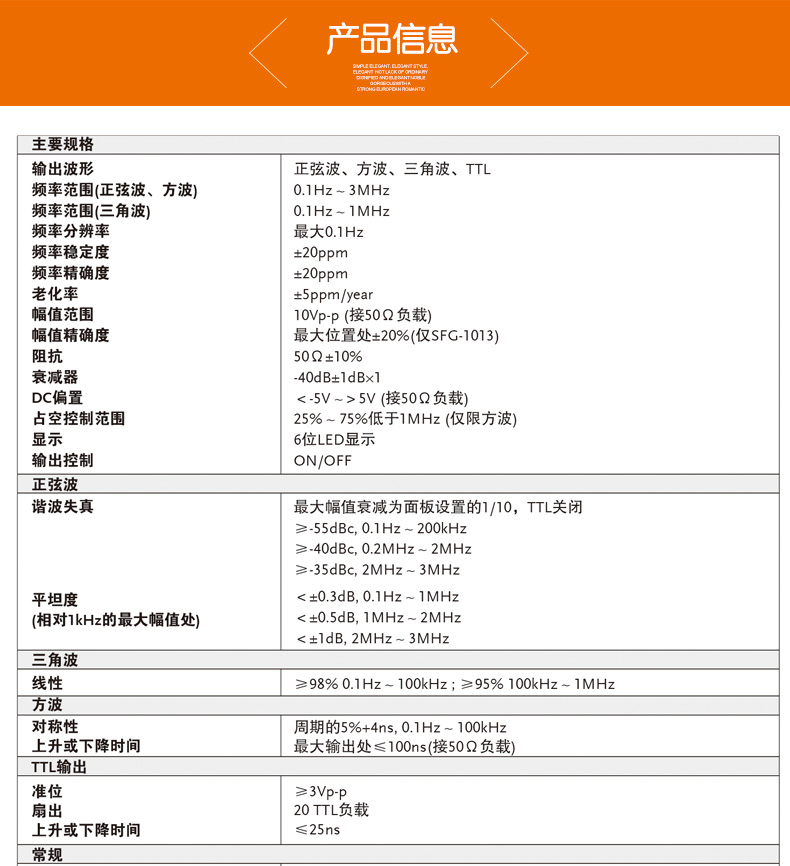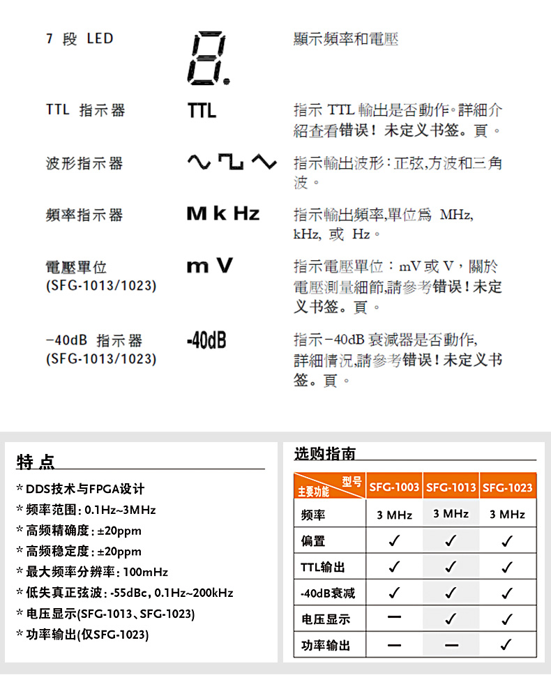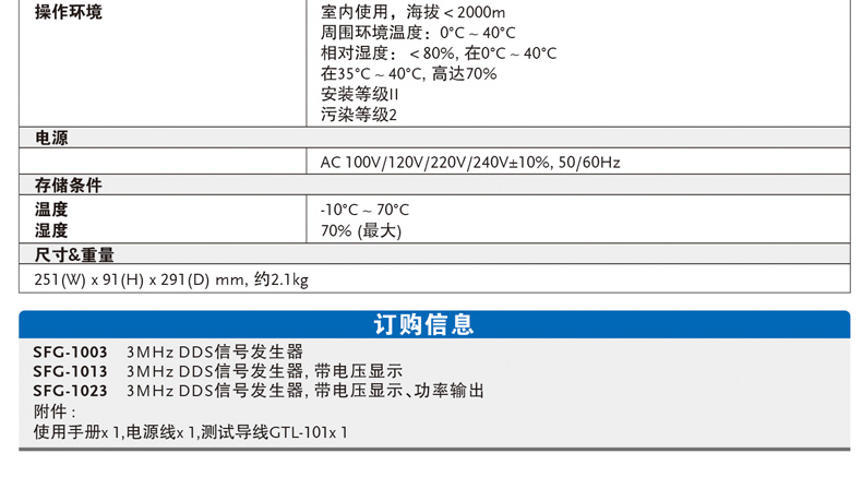 固緯信號發生器sfg1013主要規格 |