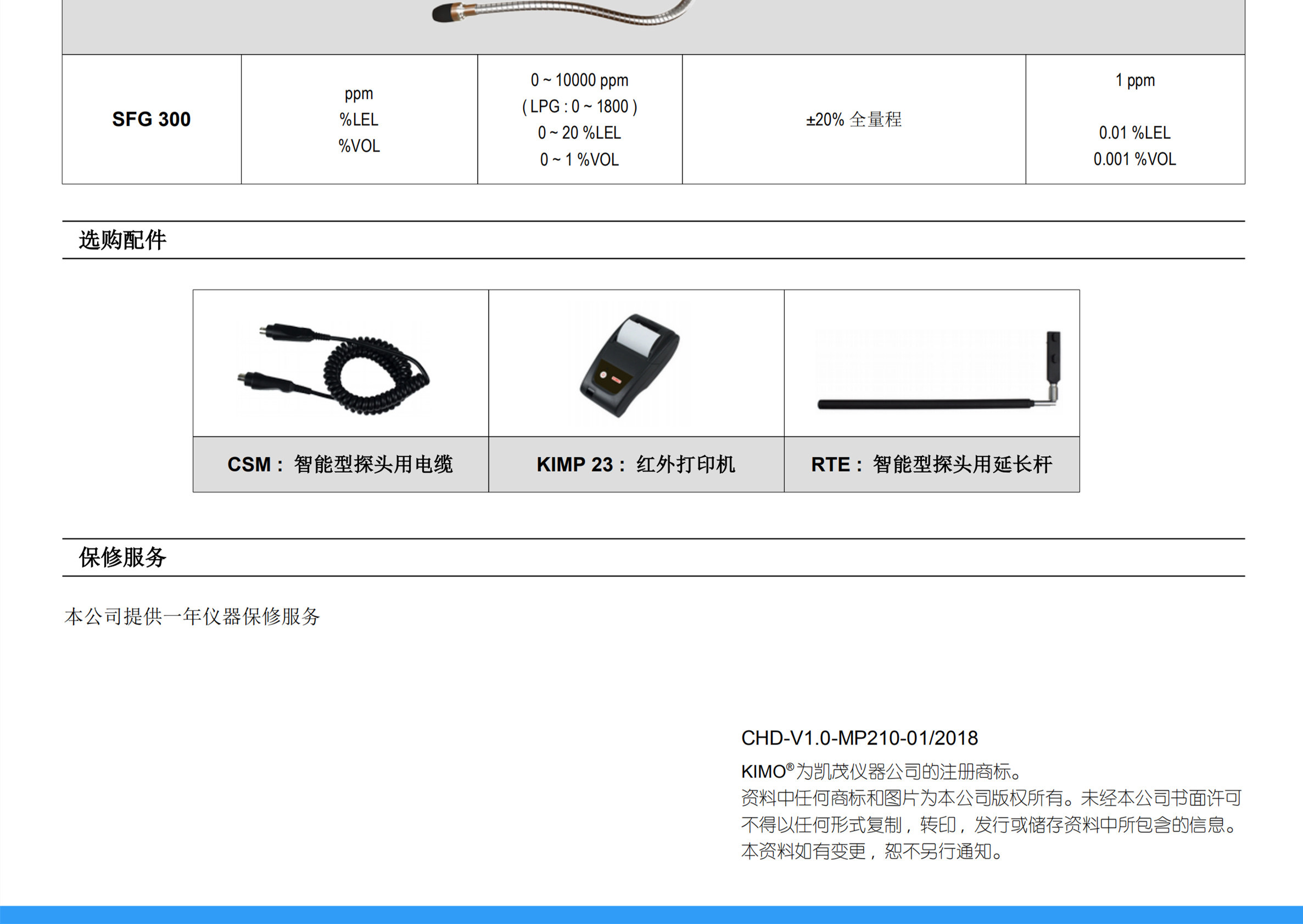 SFG 300 | 1 ~ 10000 ppm ( GPL: 0 ~ 1800 ) | ±20% 全量程 | 1 ppm |