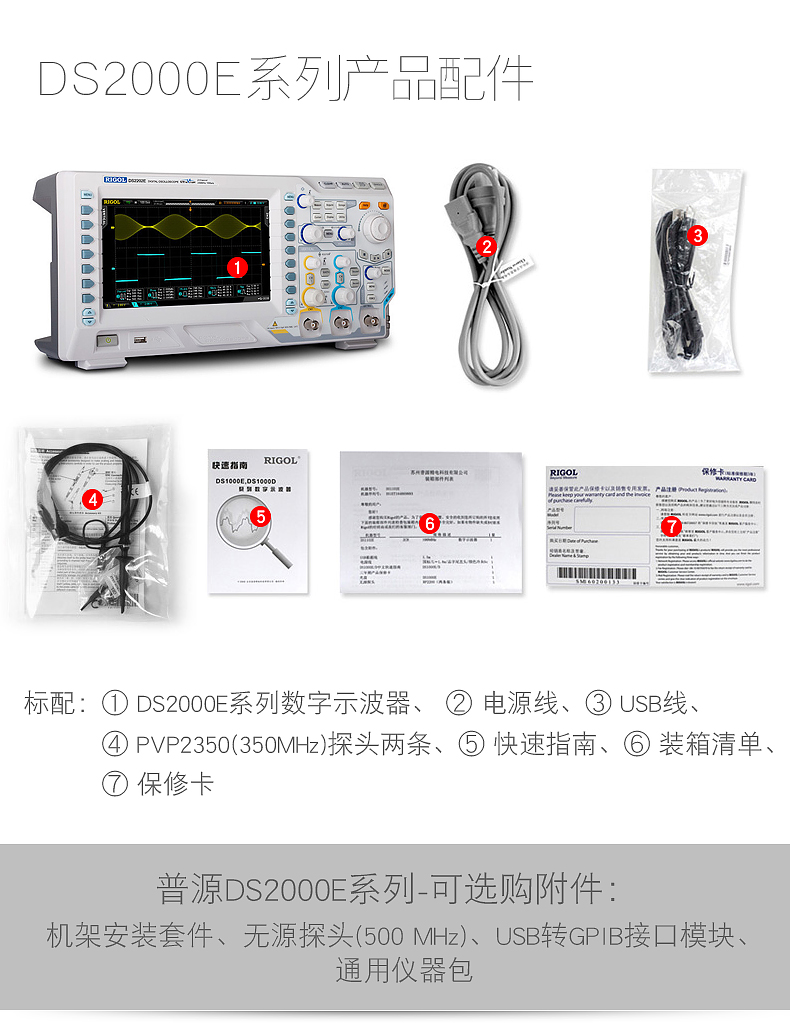 標準配件 : 標準配件:350MHz無源高阻探頭PVP2350每通道一只;USB數據線;電源線;快速指南