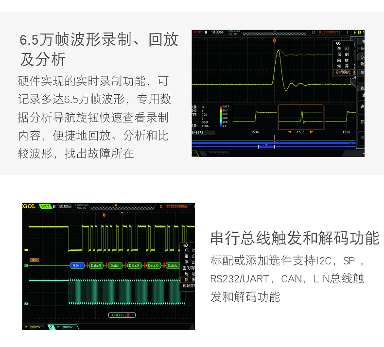 · 6.5萬幀波形錄制、回放及分析