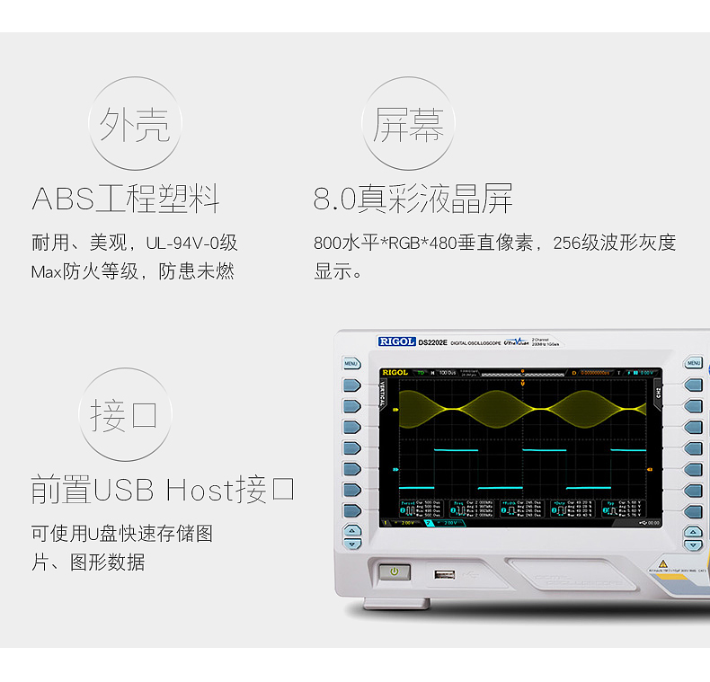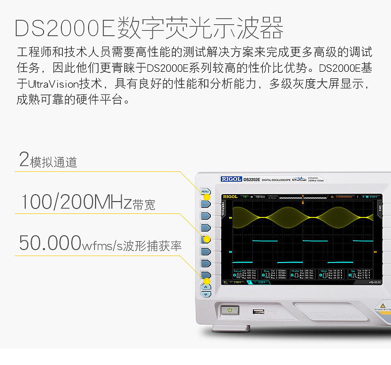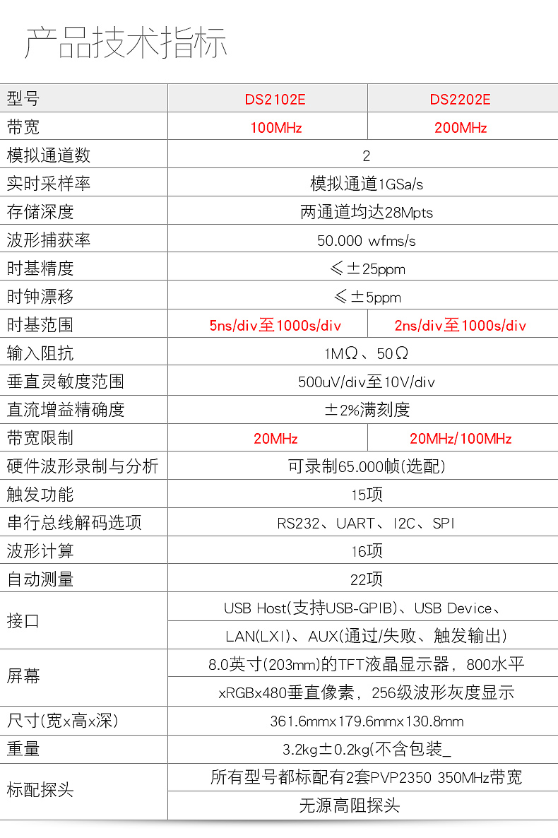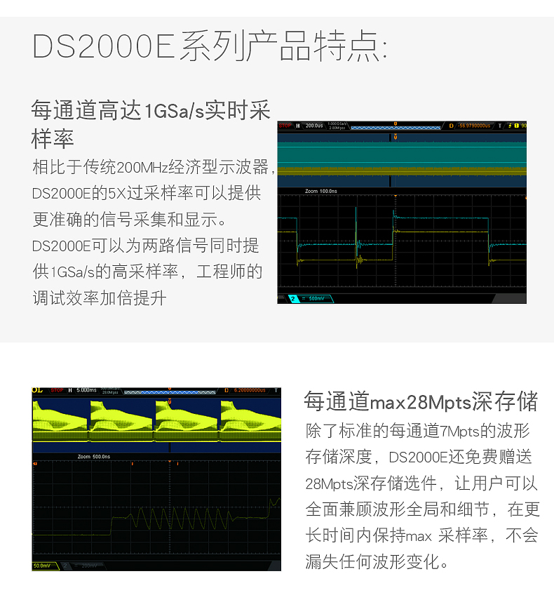 DS2202E 200MHz 2 1GSa/s(for eath ch.) 28Mpts(for both ch.) 50,000wfms/s