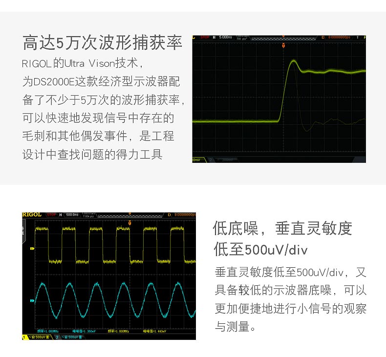 · 超低底噪,垂直靈敏度低至500uV/div