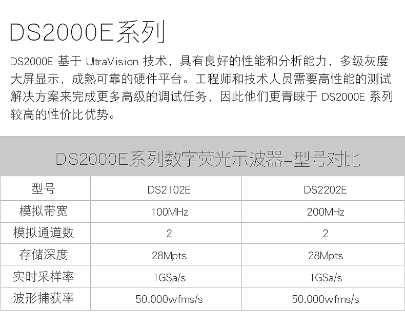 DS2102E 100MHz 2 1GSa/s(for eath ch.) 28Mpts(for eath ch.) 50,000wfms/s