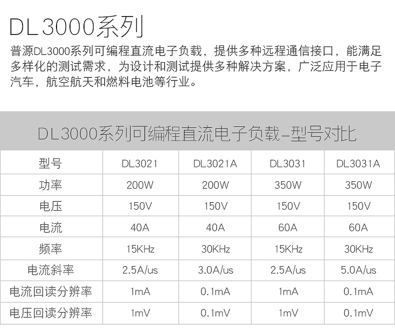 DL3000系列是一款高性價比、經濟型的可編程直流電子負載,它擁有友好的人機交互界面和優異的性能指標,提供多種遠程通信接口,能滿足多樣化的測試需求,為設計和測試提供多種解決方案,廣泛應用于汽車電子、航空航天和燃料電池等行業。