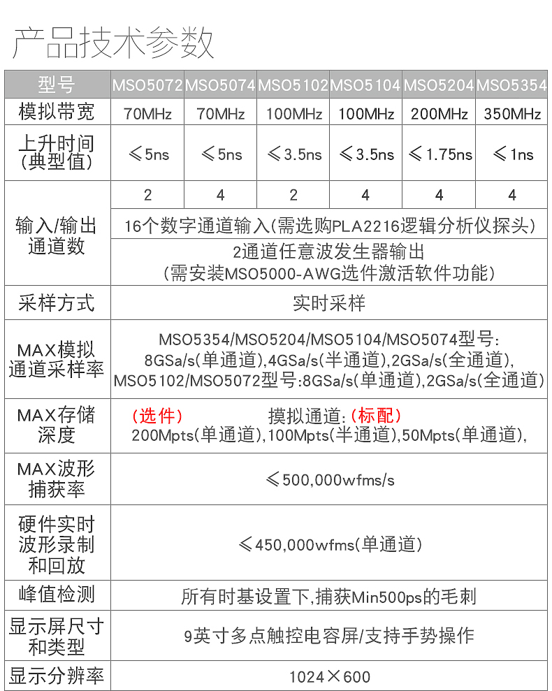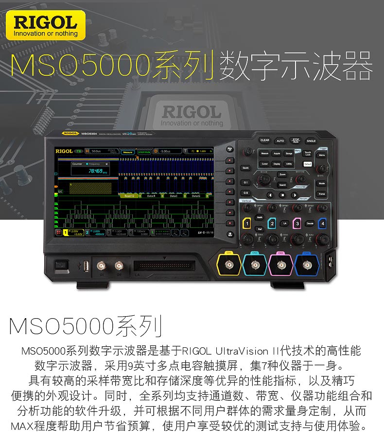 普源MSO5000系列數字示波器包含MSO5072、MSO5074、MSO5102、MSO5104、MSO5204、MSO5354六個型號。此外,5000系列數字示波器與今年5月發布的MSO/DS7000系列數字示波器一樣,采用了RIGOL自主研發的ASIC數字示波器處理芯片組,成為RIGOL中國芯家族的新成員。