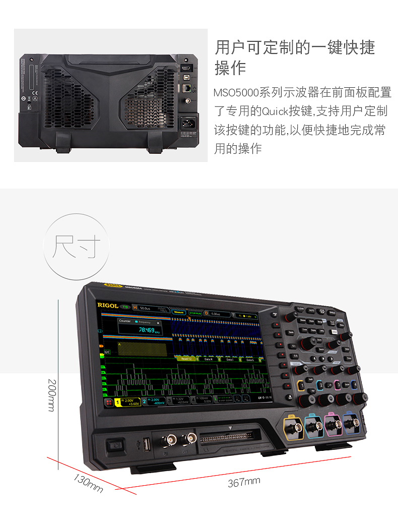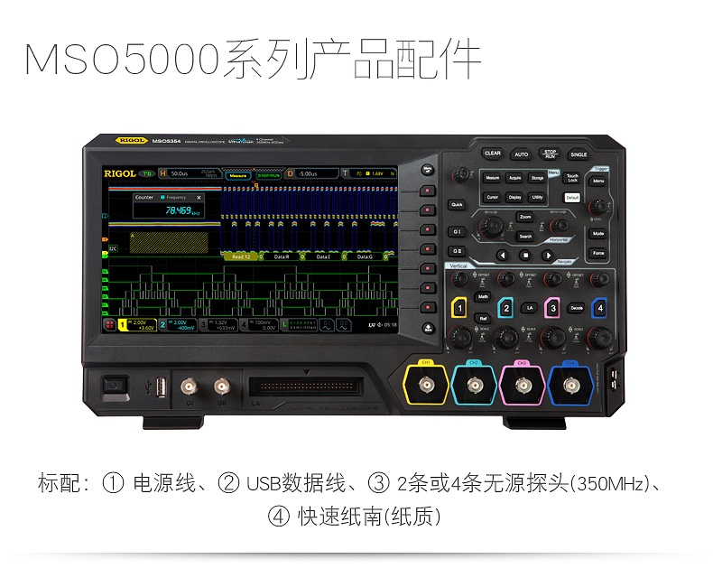 普源MSO5000系列數字示波器采用了RIGOL研發的UltraVisionII技術平臺,使示波器的性能得到較大地提升。UltraVisionII技術平臺融合了RIGOL新的數字示波器信號處理、數據分析和數字可視化方面的研究成果,使得RIGOL5000系列數字示波器采樣率高達到8GSa/s,刷新率高于500,000wfms/s,存儲深度達200Mpts。