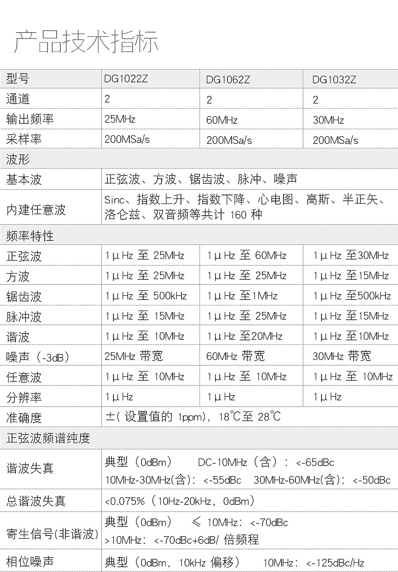 普源dg1022任意波形函數(shù)信號發(fā)生器技術參數(shù)