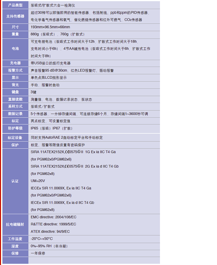 multirae氣體檢測儀GM6208是華瑞公司新開發的新一代六合一復合式氣體檢測儀,適用包括 EC、LEL、TC、PID、IR、Gamma 等在內的所有RAE 傳感器,各種傳感器可任意組合、靈活配置。檢測精度高,使用于各種危險環境使用。