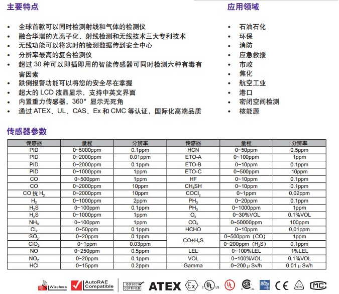 石油石化、冶金、環保、消防、應急救援監測、城市公用事業安全檢測、危險化學物質檢測。